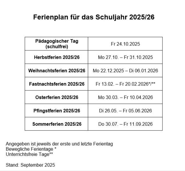 Hier finden Sie den Ferienplan 2025-26
