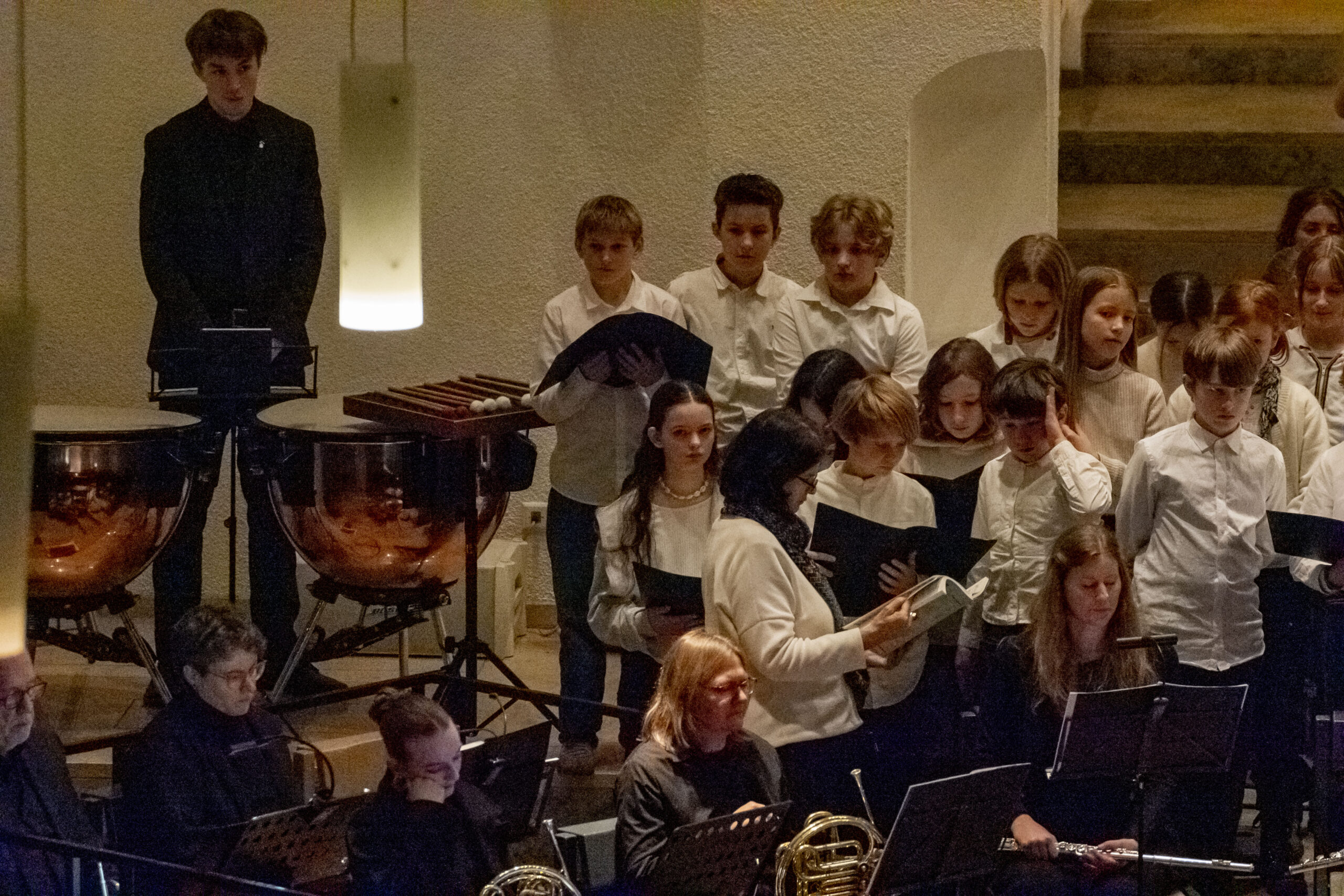 Haydns Schöpfung ist wohl eine der eindrücklichsten Kompositionen für Chor und Orchester in der abendländischen Musikgeschichte und: Sie stellt für Solisten, Chor und Orchester eine musikalisch große Herausforderung dar. Umso erfreulicher ist es, dass 34 Fünftklässler und Fünftklässlerinnen der Schule und der an unserer Schule beheimatete Chor Luminosa mit 70 Sängern und Sängerinnen aus unserer Schulgemeinschaft dieses Werk nun gemeinsam mit dem Sinfonieorchester Hegau Sinfonixx auf die Bühne brachten.